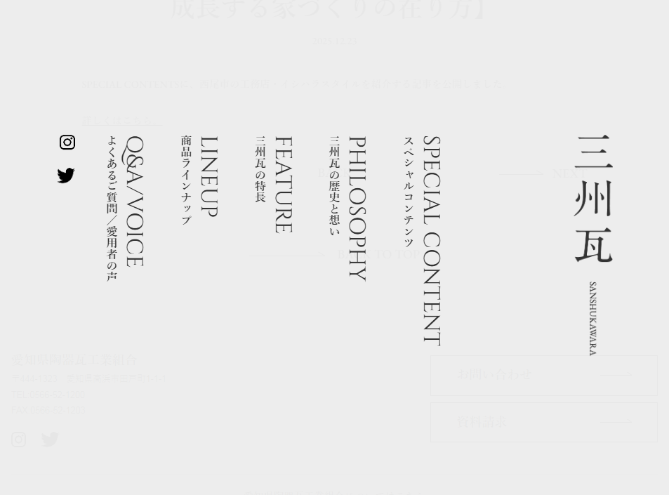 SPECIAL CONTENTS | 三州瓦ブランドサイト 三州瓦がうまれ、育まれた三州─愛知県三河地方。その文化と風土、三州のこだわりを感じてください。